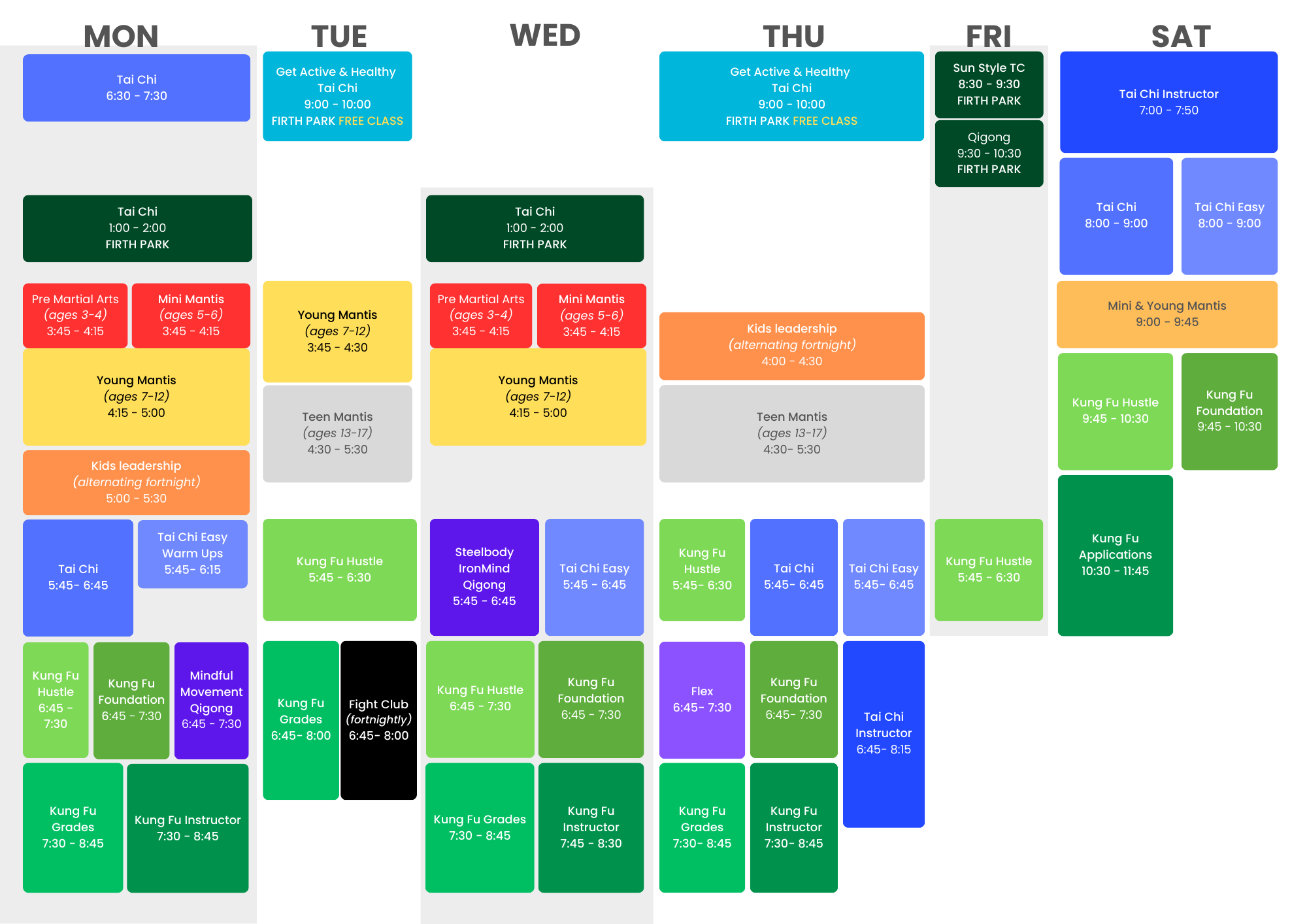 Find the class you’d like to attend in the timetable below